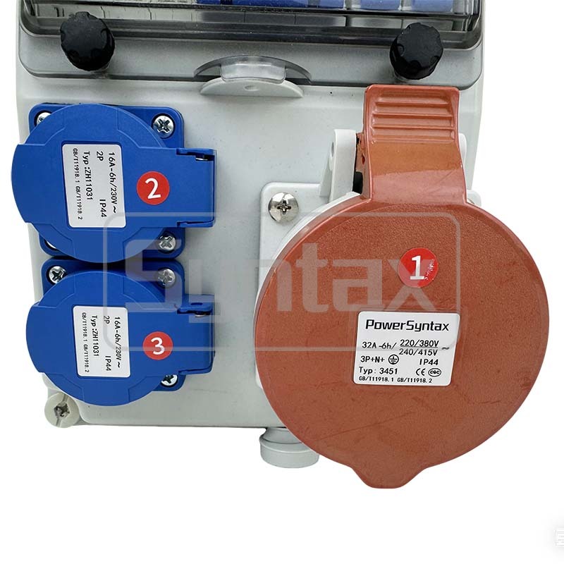 Distribution Box by Syntax; Industrial Plugs & Sockets by PowerSyntax; Breakers by CHINT. |