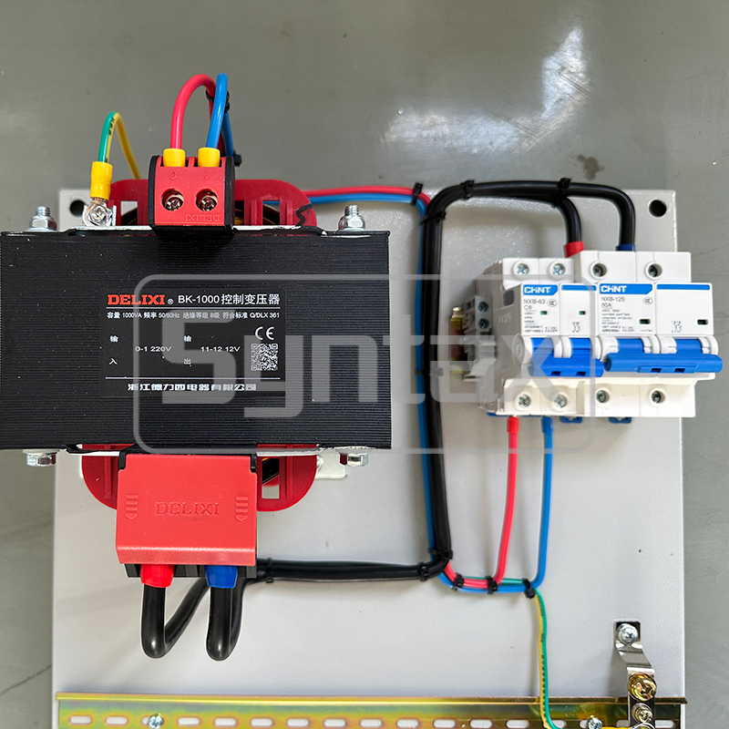 This three phase Portable Step-down Transformer Robust Metal Distribution Board 220v/12v 1000VA in hermetic box is customized for a Azerbaijan project. It is a compact electrical unit that steps down voltage, housed in a protective metal enclosure IP rating IP66 for industrial control, machine tools, or sensitive equipment, providing power at lower, safer voltages from a primary voltage 220V to secondly voltage 12V with features like noise filtering, overload protection, and easy access via cowls or covers for maintenance. It's crucial for applications needing galvanic isolation, with sizes varying from small units for local control to larger box-type substations, and it includes safety features like earthing for reliable operation. The capacity of the transformer is 1000vA with full copper coil. The brand of BK control transformer is by famous DELIXI, the breaker is by famous CHINT, and the metal box is by famous Syntax. We can bespoke power distribution boxes built to order.